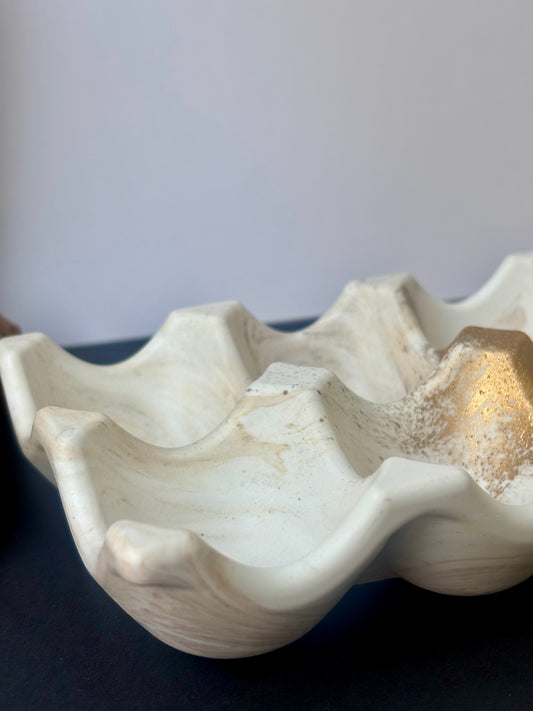 Support à Œufs en Jesmonite Marbre – Blanc, Marron & Dore | Studio Unik