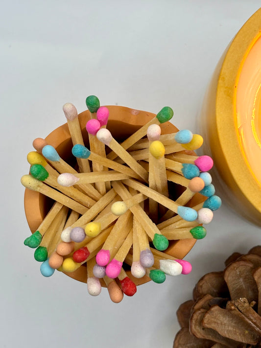 Pot à allumettes colorées avec grattoir intégré