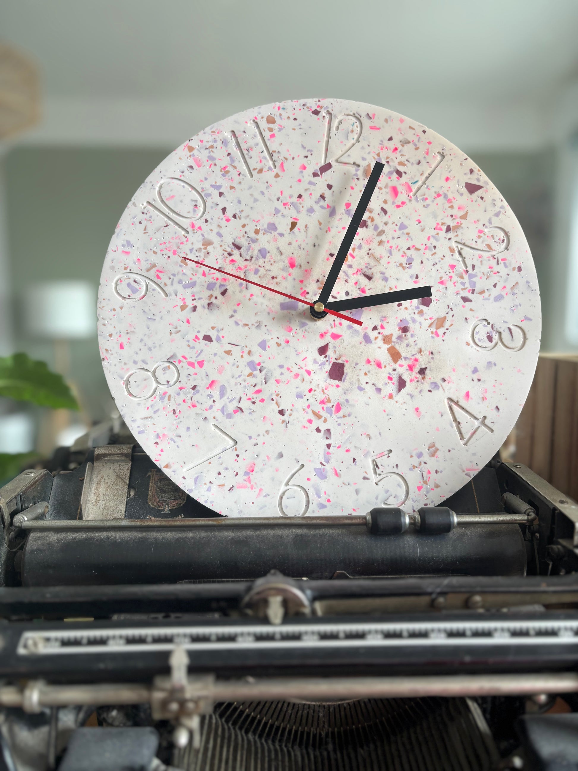 Horloge murale artisanale en jesmonite terrazzo – design unique