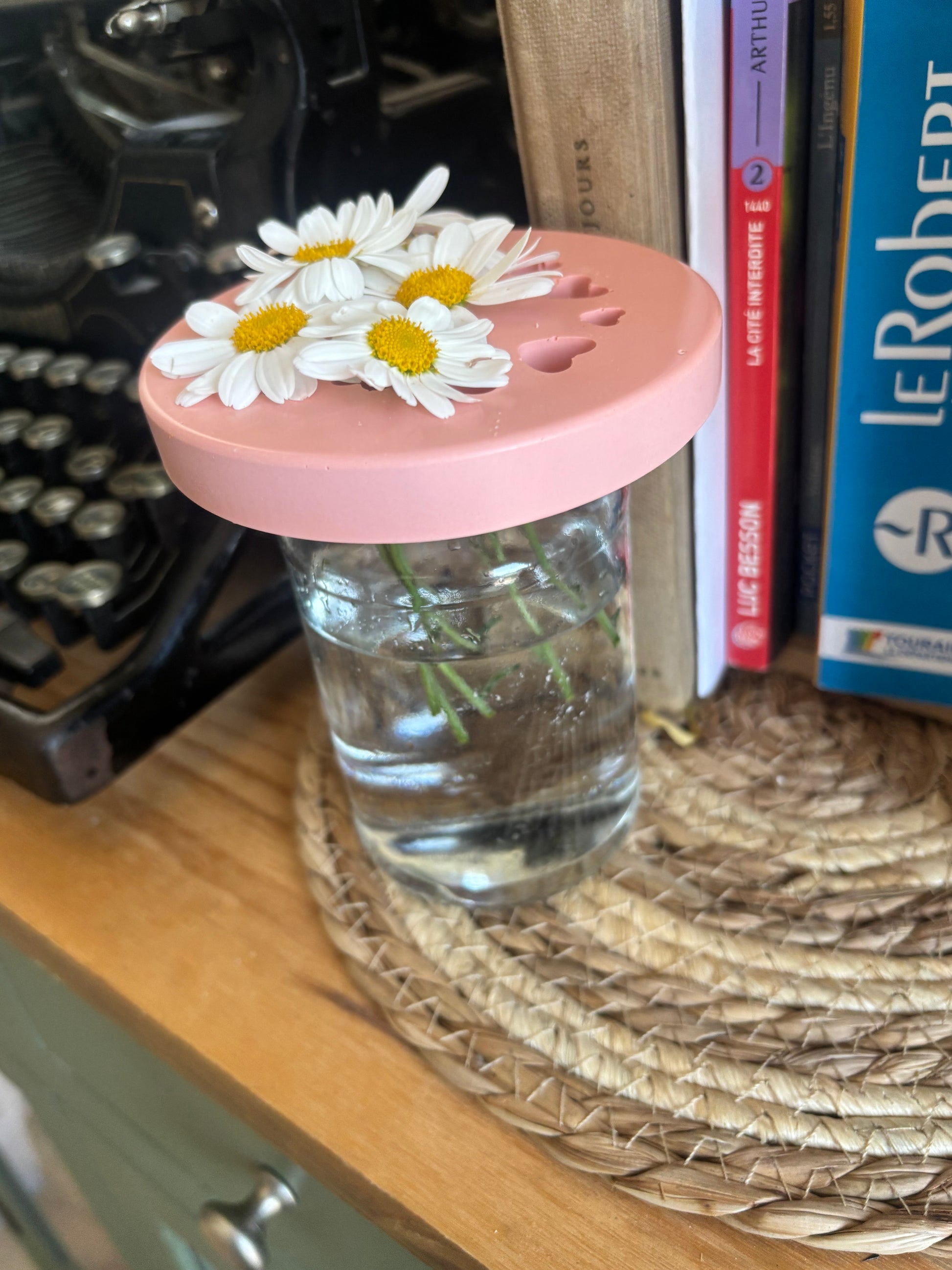 Placez le disque sur l'ouverture du bol, insérez les tiges de fleurs dans les perforations, ajustez l’angle et la hauteur selon vos envies. Le poids du disque et la texture de la Jesmonite assurent une bonne stabilité.