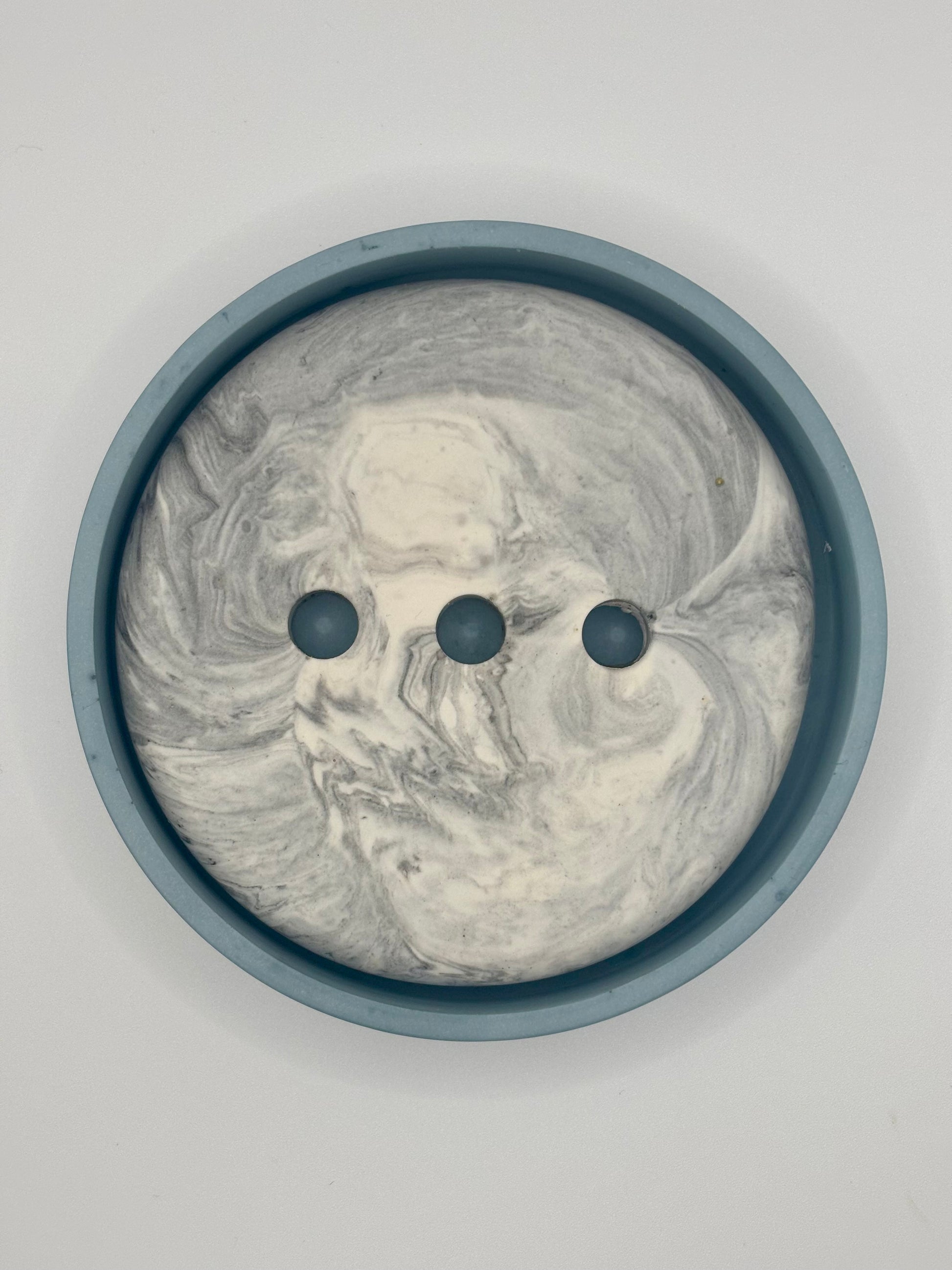 Porte savon rond Bleu azur et effet marbre en Jesmonite