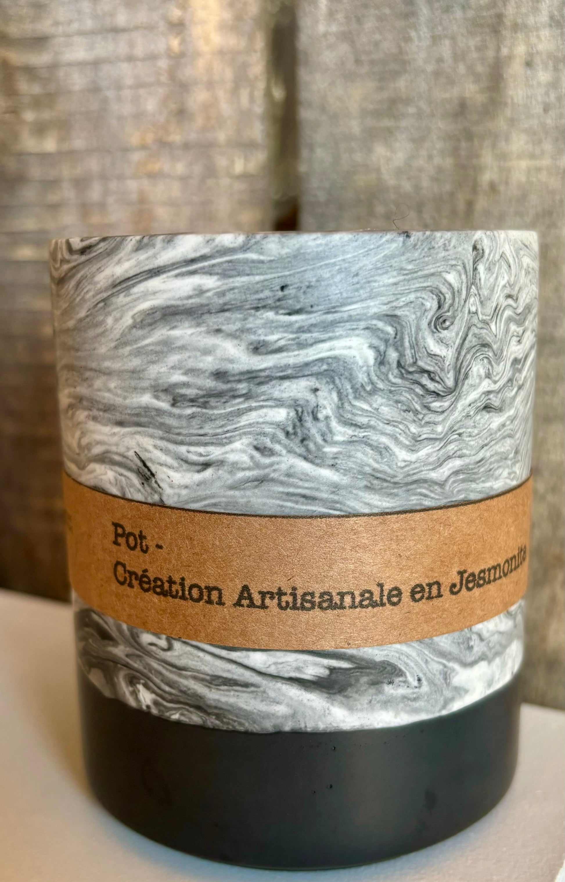 Mes créations sont fabriqués en jesmonite : un matériau constitué de gypse (une pierre de plâtre) et d'un composant acrylique sans solvant. C'est l'alternative écologique idéale aux matériaux à base de résine comme la fibre de verre, le polyester ou encore le béton coulé.